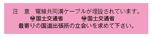 | 道路法施行令、路法施行規則の法令によって地下に埋設する配管配線には、明示テープ等によって明記する事が義務付けられています。 |